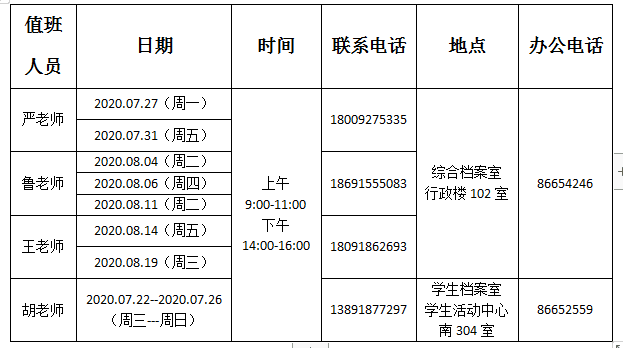 根据学院《关于2020年暑假放假的通知》的精神,为了更好地服务师生,便于师生和各职能部门对于档案的查询利用,现将2020年暑假期间档案查询利用服务时间公布如下: