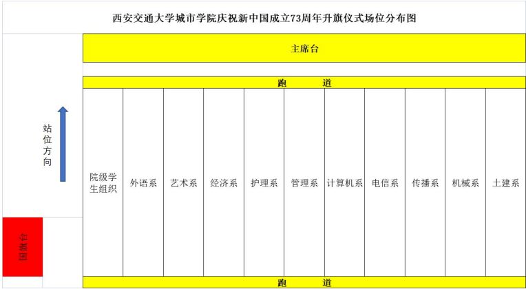1.请各系团工委负责通知相关参加仪式人员于9月30日6:50前入场完毕,并在指定位置(如遇特殊情况,另行通知)列队;