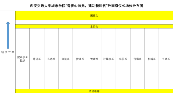附:“青春心向党,建功新时代”升国旗仪式场位分布图(喷泉广场)