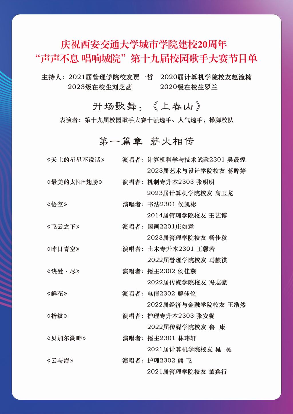 为庆祝beat365亚洲版官网城市学院建校20周年,学校将于2024年5月10日晚19:00将在校田径操场举办“声声不息 唱响城院”第十九届校园歌手大赛。