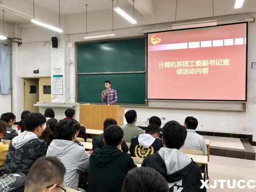 本次启动仪式在嘹亮的团歌中拉开序幕。大会第一项,由计算机系团工委副书记刘源同学剖析本次团日活动的主题精神,以及学风建设的真正意义。学风不仅影响到当前的教学效果,影响到人才培养目标的实现,而且对学生能否成才都具有不可忽视的作用,学风的好坏直接影响到一个班级、一个系、一所学校的长久发展。接下来,刘源提出“引领、传承、创新,我们一起撸起袖子加油干”的口号,回顾往届团日活动足迹,从校内外两方面对全系和各团支部团日活动工作做了明确部署。会议第二项,由组织部副部长宗鑫雨为在场成员宣读了《2018年度主题团日活动考核细则》,明确职责,方能砥砺前行。会议第三项,2017届优秀团支书代表包敖分享其活动经验,他分享了2017年团日活动举办经验,同时强调,办好团日活动的前提是吃透文件主旨精神,磨刀不误砍柴工,各支部委员会需仔细研读文件、理解文件精神所在、要求所在,才能做到举办活动心里有底,游刃有余;接下来,2018级团支书代表周思文发言,她表示将积极参与本次团日活动,努力将活动做到更好,展现出计算机系团员青年的风采;会议第四项,学生主管刘敏涛老师针对往届各系活动举办情况发表了看法并提出了建议,他强调要学习习近平总书记的精神品质,要求我们谨记团日活动的标准和学风建设的主题,督促调动班级积极性共同参与此次活动。
