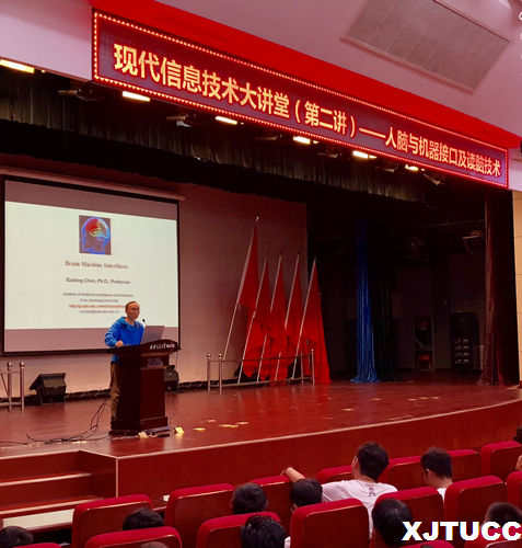 9月20日晚,西安交大城市学院计算机系在教二报告厅举办“现代信息技术大讲堂”第二讲,beat365亚洲版官网教授、博士生导师、陕西省“百人计划”特聘教授陈霸东作题为《人脑与机器接口及读脑技术》的报告。系主任缪相林教授与2017级、2018级学生参会,系学生工作主管刘敏涛主持报告会。