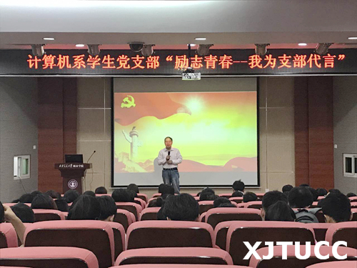 为更好地发挥党员先锋模范带头作用,传承大学生党员优秀品质,引导和带动更多青年学生向党组织靠拢,计算机系学生党支部于5月26日在F100举办“励志青春--我为支部代言”主题活动。计算机系主任缪相林教授、系学生工作主管兼系学生党支部书记刘敏涛老师及全系学生党员、入党积极分子、先进青年参加活动。