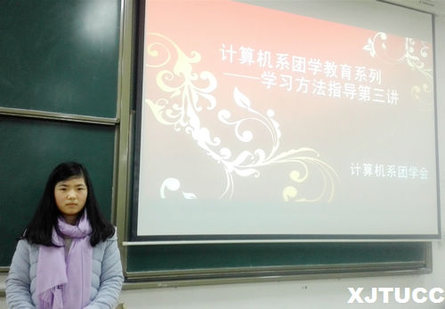 为更好地培养计算机系团学会优秀团学干部,加强学生干部综合素质,11月22日晚,计算机系团工委在B400教室进行了计算机团学教育系列之学习方法指导第三讲。计算机系团学负责人刘一凯老师及系学生会全体干部参加了此次讲座。此次讲座特别邀请到学风宣讲团的魏雪、杨坤、郭耀辉等几位同学为我们讲解如何在大学中规划自己的时间,更有效的学习知识,做到学习工作两不误。