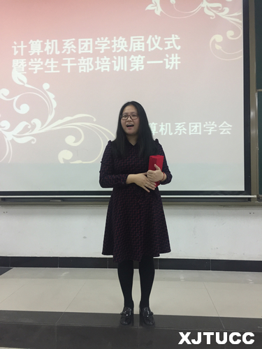于老师对新一届团学干部提出了几点要求。一是系团工委要起到思想引领的作用。要求团学干部在党中央、团中央的领导下持续践行社会主义核心价值观,强化团学干部的思想认识,积极向党组织靠拢,进一步提高责任意识、提高服务质量。二是团学干部在服务广大学生的同时,必须注重对专业技能的培养和专业知识的学习,做到工作学习两手抓,为成为社会栋梁打下良好基础。三是对文化实践的开展提出了要求。在校内,希望以专业为基础,开展如“家乡”系列演讲比赛、科技文化节等形式多样、内涵丰富的特色活动。在校外,继续开展爱心敬老、关爱留守儿童等志愿服务活动。通过多种活动的开展,增强我系团学干部的人文情怀和实践能力,做到学会感恩、乐于奉献。