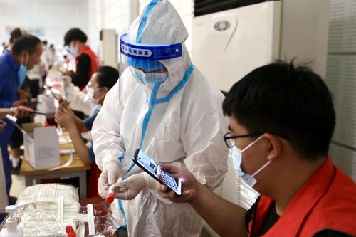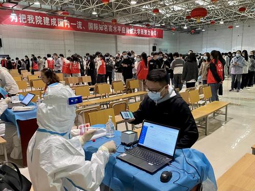 此次核酸检测离不开学生志愿者们的辛苦付出。19日上午11时接到核酸检测工作安排,学院团委12时便集结50名志愿者在大学生活动中心进行前期布场。1时10分,40余名志愿者上岗,从下午14时至晚间23时,在活动中心楼梯间、检测场地均能看到志愿者们忙碌而暖心的身影。