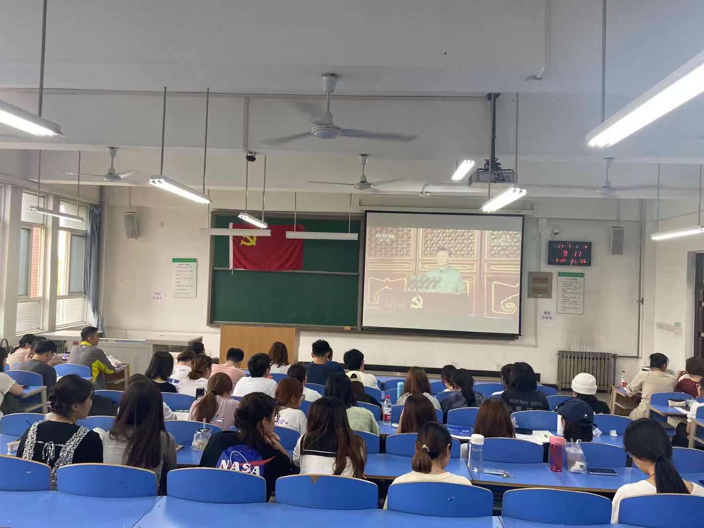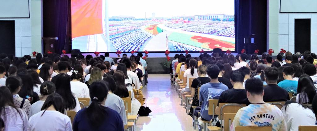 7月1日上午,庆祝中国共产党成立100周年大会在北京天安门广场隆重举行。中共中央总书记、国家主席、中央军委主席习近平发表重要讲话。beat365亚洲版官网城市学院把收看庆祝中国共产党成立100周年大会实况作为对全院党员干部、师生员工进行党的历史、党的知识和时事政治教育的重要课堂,作为党史学习教育的重要内容,组织师生员工通过多种形式观看大会直播,认真聆听习近平总书记在大会上的重要讲话。学院组织中层以上领导干部、教工党支部书记在行政楼504会议室集体观看直播;学生服务中心组织学生党员、积极分子、全院团学干部以及全体学工人员在大学生活动中心一同观看直播;各党支部、各部门组织党员、团员、群众观看直播,一同感受一百载峥嵘岁月,一百载日月兼程,一百载的辉煌成就。据悉,中国青年网也报道了学院青年团员观看庆祝中国共产党成立100周年大会直播情况。