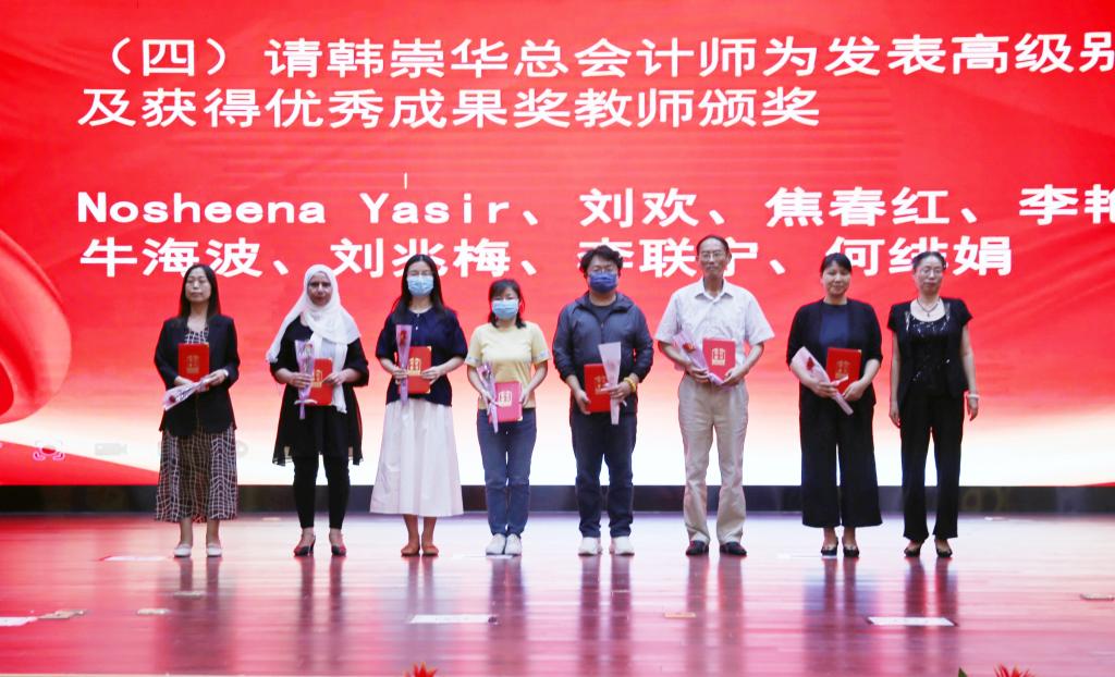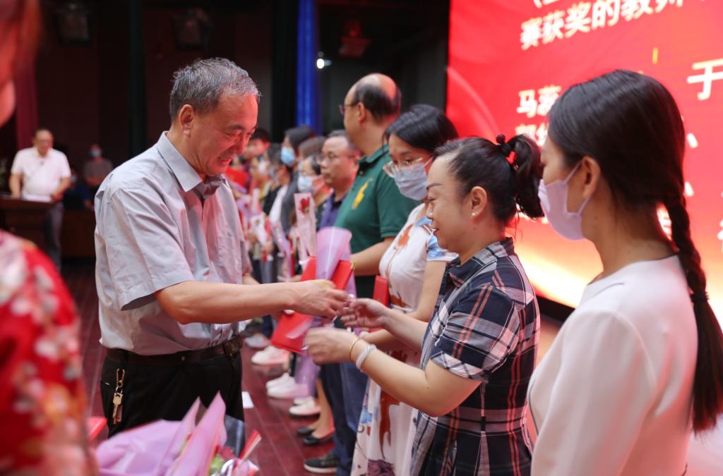 奏国歌仪式后,朱旭副院长宣布表彰决定,对一年来在教学、科研、管理和服务岗位取得成绩的先进个人和集体进行表彰。与会院领导分别为获奖个人和集体颁发荣誉证书,并赠送鲜花。