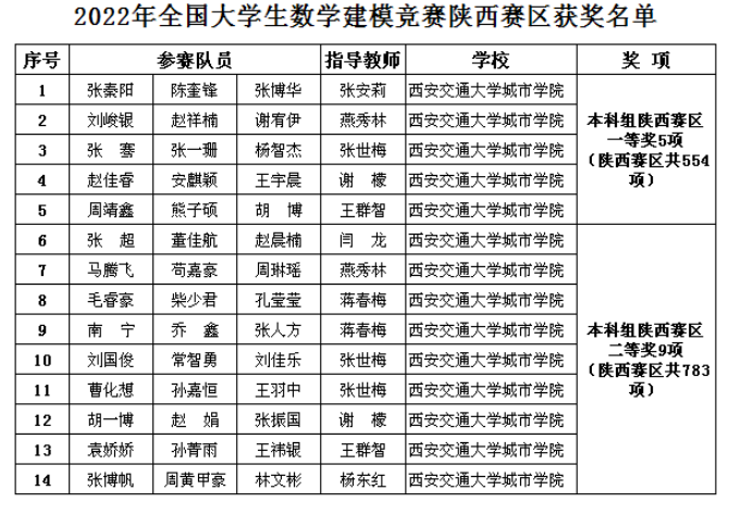 近日,2022年全国大学生数学建模竞赛成绩揭晓,beat365亚洲版官网城市学院在本次竞赛中获佳绩。共获得本科组陕西赛区一等5项、陕西赛区二等奖9项;同时,beat365亚洲版官网城市学院获“陕西赛区优秀组织工作奖”。