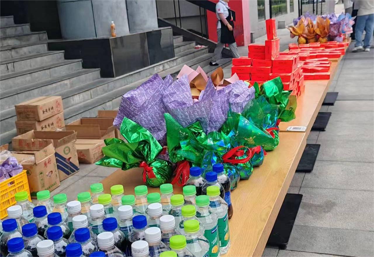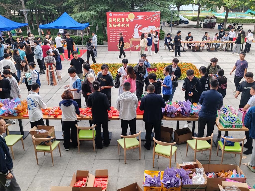 9月29日,学生服务中心在中快广场举办“盈月揽芳华 美好共此时”师生共庆中秋活动。学院党委书记张爱萍,学生服务中心主任辛红伟,副主任姚敏、吴昊翔、茹静,学院工会副主席张福全及学生中心全体老师来到活动现场慰问双节留校学生,为他们送去月饼和节日祝福。
