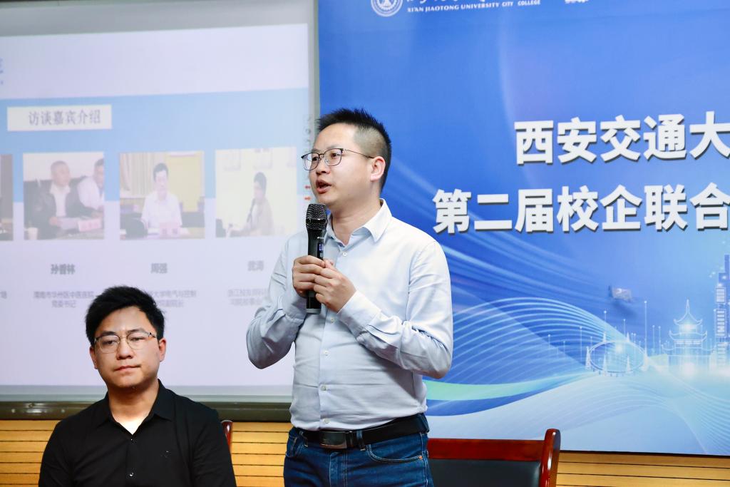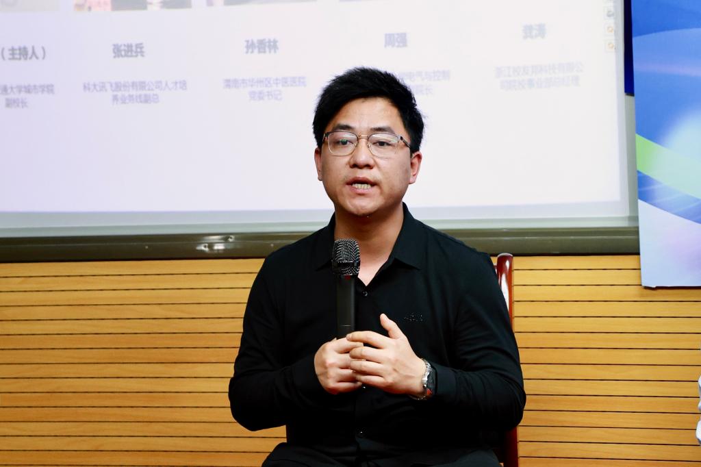 校企圆桌对话环节由朱旭副校长主持。对话嘉宾有科大讯飞股份有限公司人才培养业务线副总张进兵、陕西科技大学电气与控制工程学院副院长周强、渭南市华州区中医医院党委书记孙香林、浙江校友邦科技有限公司院校事业部总经理龚涛。张进兵针对科大讯飞基于行业需求分析进行校企联合培养人才的探索与实践进行了交流;周强教授分析了高层次应用型创新人才培养中存在的问题,分享了陕西科技大学“全员科创”校企协同育人案例;孙香林针对学校、医院联合培养护理与康复技能人才的实践进行了交流;龚涛分享了“校友邦”数字化赋能产教融合高质量发展的探索与实践。随后,陕西金宇航空科技有限公司总经理冉磊、计算机学院院长姚全珠教授对人才培养、校企协同育人的下一步设想分别作了发言。