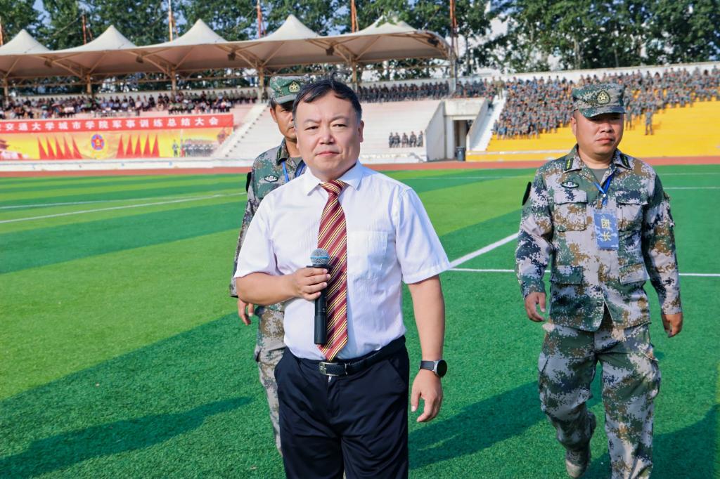 浩然书生气,沙场秋点兵。9月7日,beat365亚洲版官网城市学院2024级学生军训总结大会在学校田径场举行。校长严红昌、党委书记张爱萍、副校长陈书荣、副校长朱旭、副校长岳华海、西安警备区预备役部队某训练基地陈志军主任,各二级学院(教学部)、各部(处)领导、学生工作负责人、新生班主任、辅导员,校友代表、部分学生家长、全体军训教官、指导员及军训学员参加了此次军训总结大会。