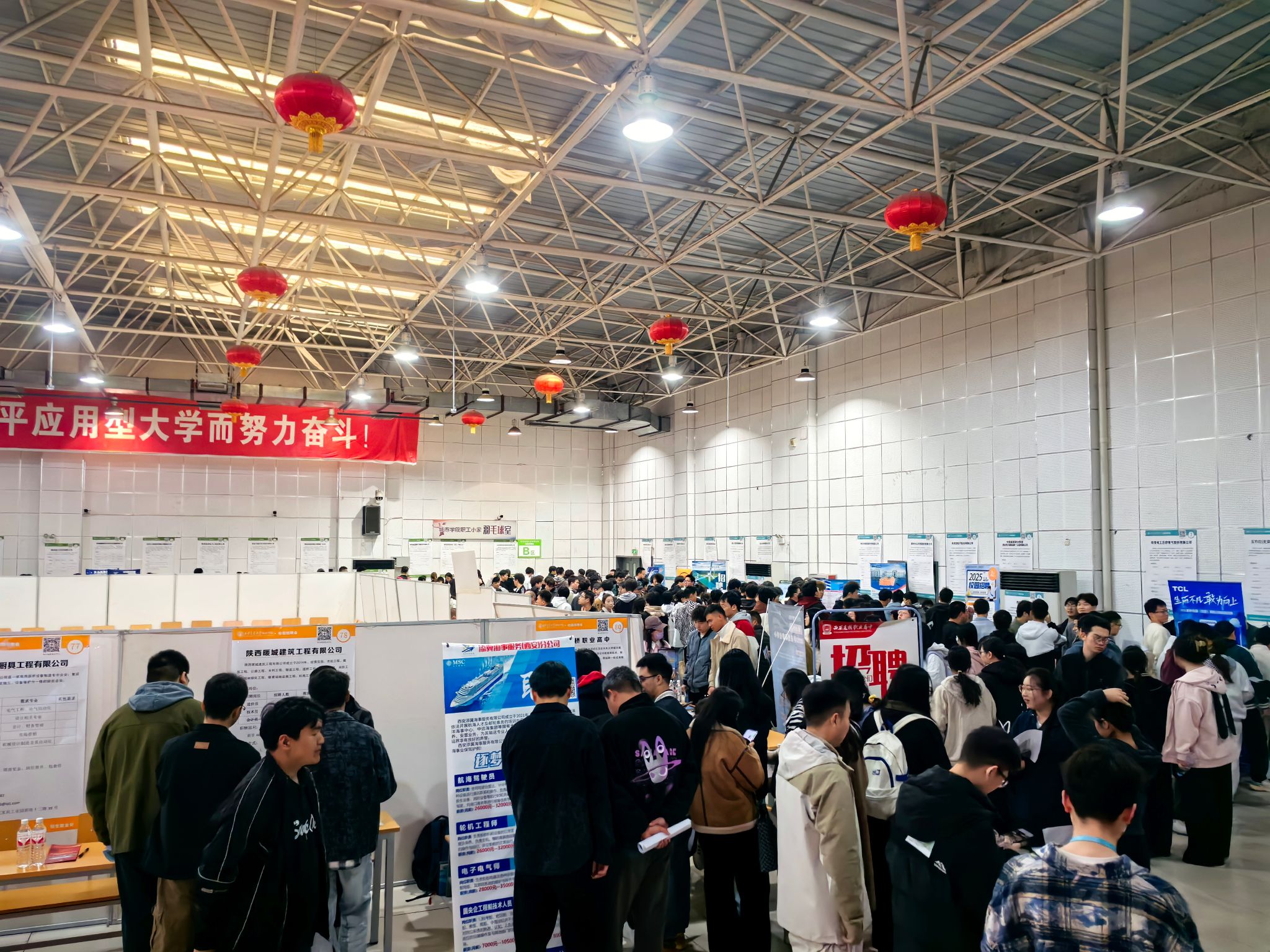 为贯彻落实教育部“聚力拓岗优服务,春季攻坚促就业”专项行动要求,抓住春季促就业工作攻坚期,全力促进学校2025届毕业生充分且高质量就业,3月27日下午,beat365亚洲版官网城市学院在大学生活动中心举办“青春逐梦,职通未来”暨“春季促就业攻坚行动”2025届毕业生春季校园招聘会。招生就业处提前谋划、积极准备、主动出击,对接西安浐灞国际港组织人事部及浙江杭州市就业管理服务中心,邀请近120家企业参会,提供就业岗位3923个,涵盖教育、卫生、金融、制造业、信息技术、传媒等多个领域,为我校毕业生搭建了广阔的就业平台。