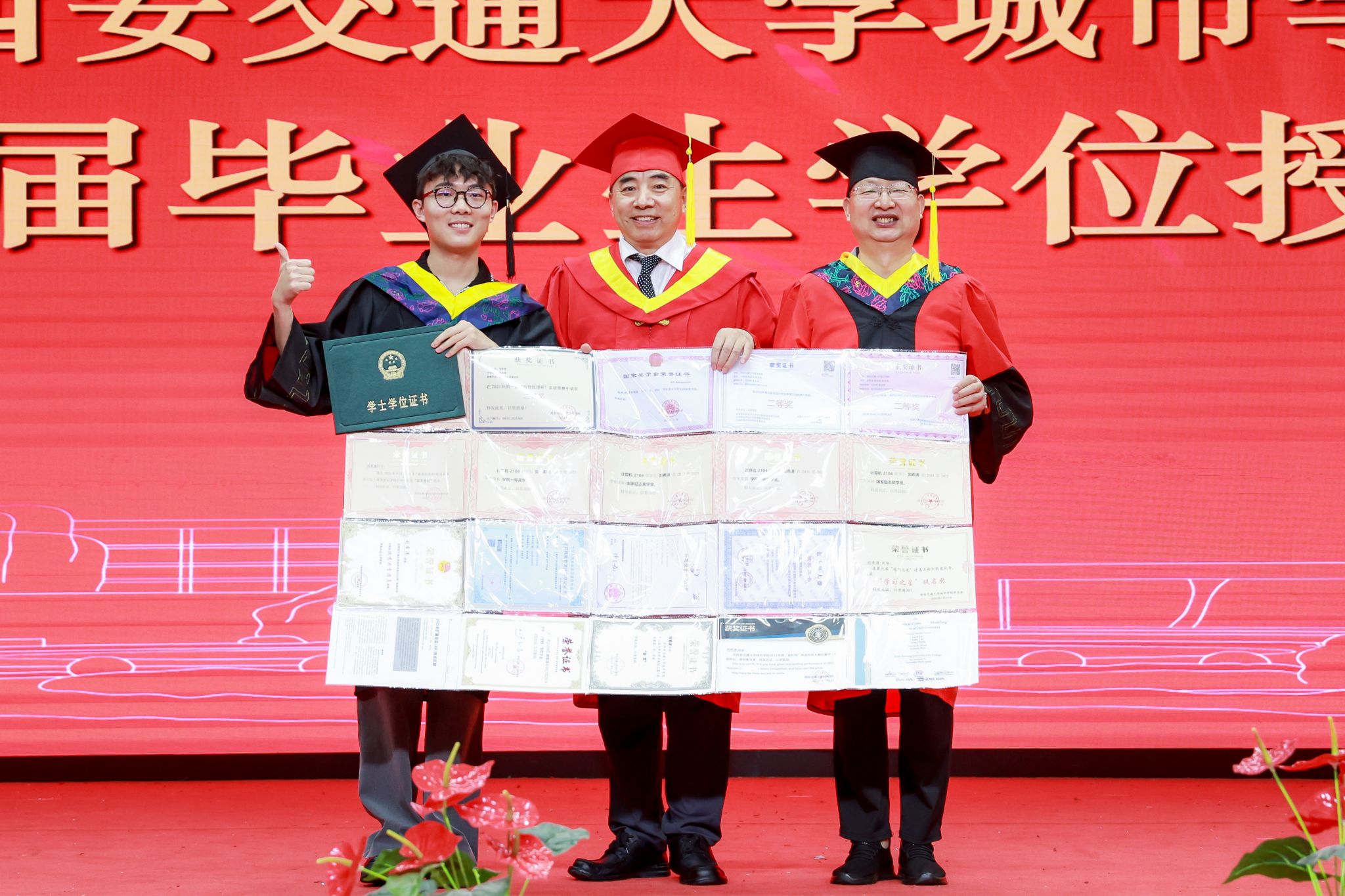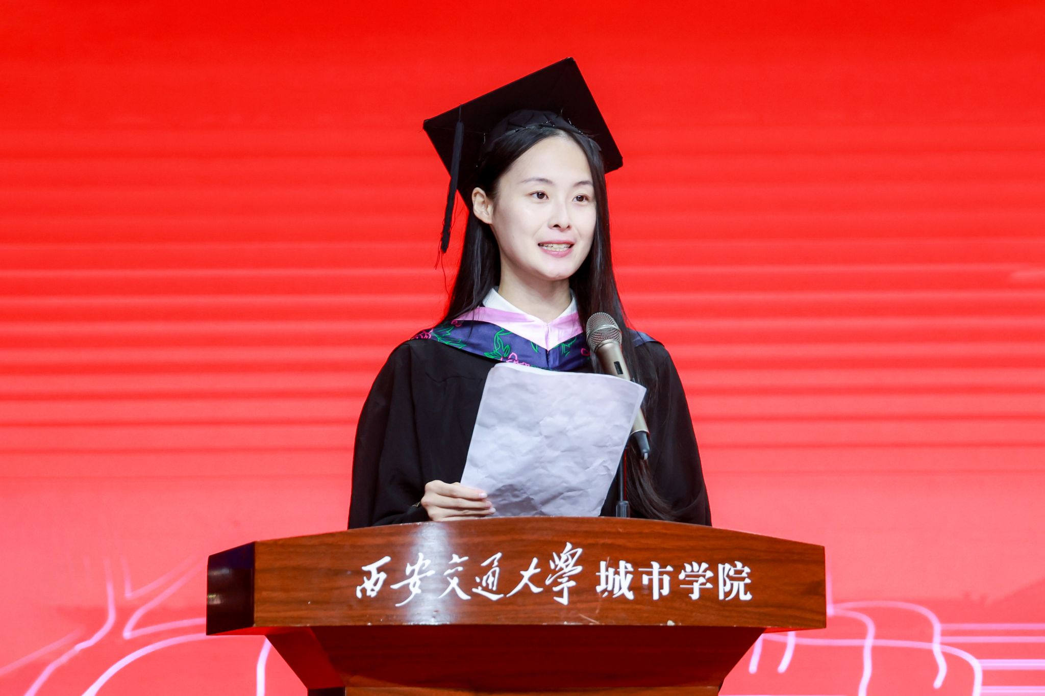 朱旭副校长(代理校长)寄语毕业生,与毕业生们一起回顾了大学四年间的点点滴滴,一同梳理了大学期间大家全方位的成长蜕变。在2025届毕业生即将走向未来广阔天地之际,他送给大家三个“心”,期望毕业生们将其内化于心、外化于行。一是永葆进取心,要保持终身学习的态度;二是坚守责任心,要牢记城院人的担当,传承“西迁精神”的家国情怀;三是保持平常心,既能享受成功的喜悦,也能坦然面对暂时的失意。他希望大家怀揣壮志,勇敢前行,以无畏之姿披荆斩棘,用拼搏之笔书写华章。无论大家身在何方,母校永远是大家坚强的依靠,母校的大门永远为大家敞开。在毕业生们即将开启人生新征程之际,他衷心祝福2025届毕业生们逐梦远方,前程似锦,未来可期!