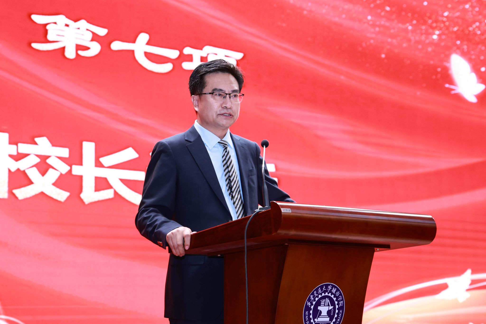 王永泉校长在讲话中代表学校向辛勤耕耘在教学、科研和管理服务一线的广大教职工致以节日的问候和崇高的敬意,向获得表彰的先进集体和个人表示热烈的祝贺。他指出,当前,学校正处在内涵式发展的关键阶段。面对高等教育发展的新要求,面对学校建设国内一流高水平应用型大学的任务,全体教师要全面贯彻落实“教育强国”新要求,践行教育初心使命,切实肩负起“培根铸魂育新人”的伟大使命。各单位、各部门要在人才引进、培养与稳定工作上形成共识与合力,以实际行动助力教师在教育教学中取得优异成绩,要在全校范围内营造尊师重教的浓厚氛围,为打造一支师德高尚、业务精湛、结构合理、充满活力的高素质专业化教师队伍提供坚实保障。