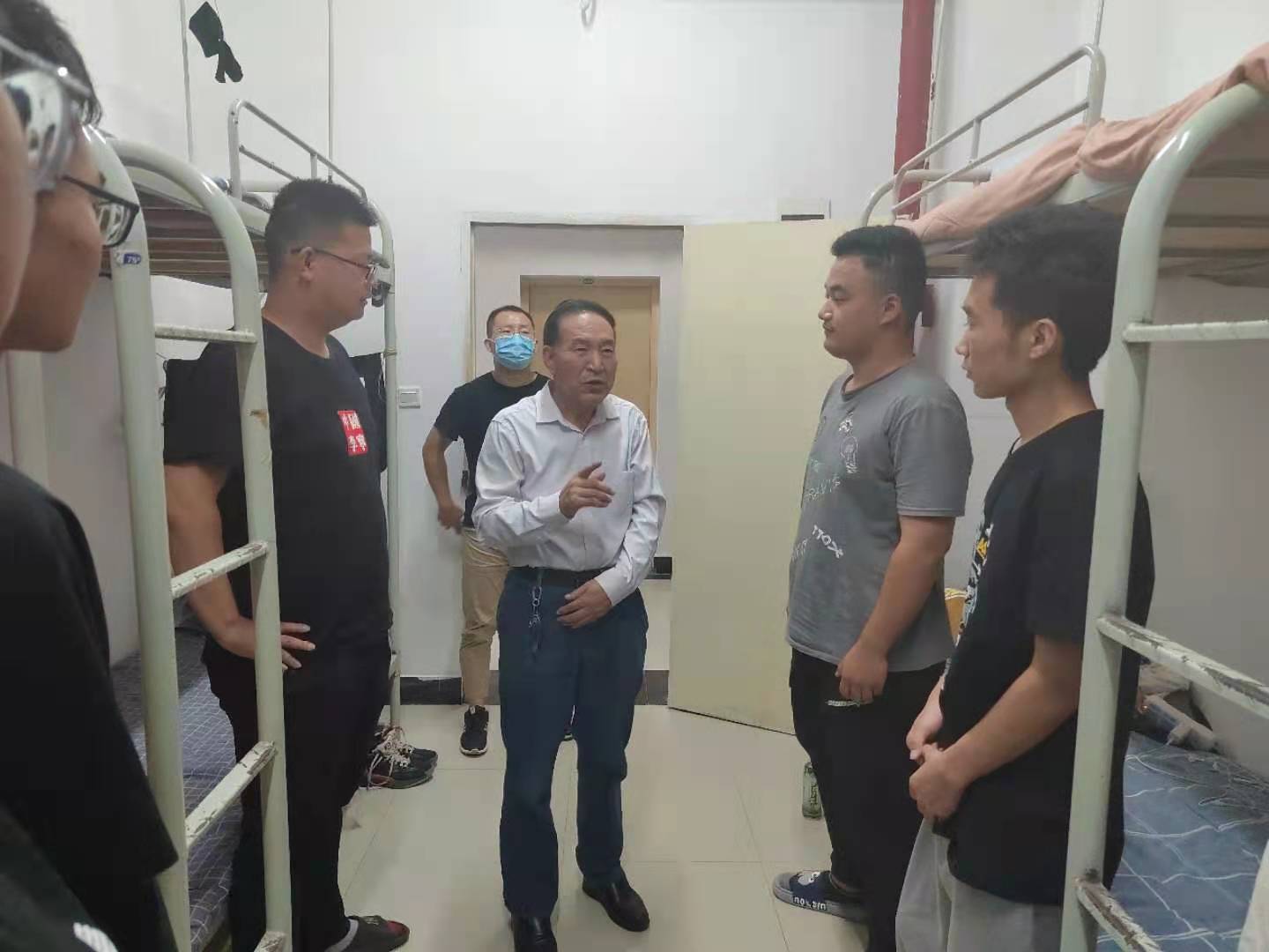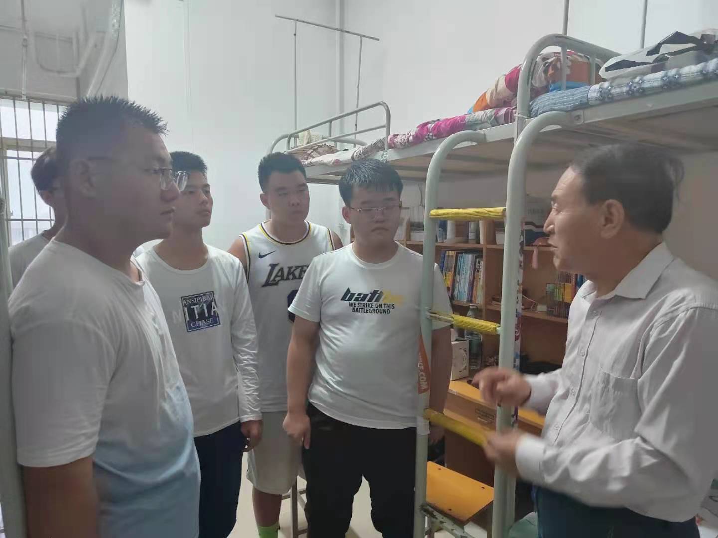 走访过程中,老师们亲切地与新生进行交谈,细心询问入学后的住宿、就餐和生活用品等问题,提醒学生注意寝室安全问题。缪主任提醒新生们要深刻认识到大学学习的重要性,培养良好的学习习惯,选择高效科学的学习方法,做好学业规划,合理安排时间。为抓好常态化疫情防控,缪老师建议学生做好个人防护,要经常开窗通风、加强锻炼,要及时添衣保暖、注意健康,遇到困难及时和老师沟通解决,并提醒同学们要整理好物品,共同营造良好的宿舍氛围。同时要珍惜四年大学时光,学会相互理解、彼此尊重,互相比学赶帮超,尽快熟悉和融入大学生活。