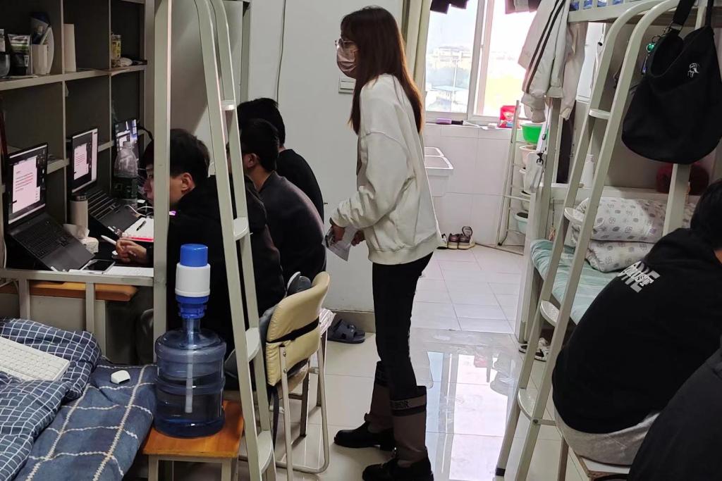 在学生宿舍走访过程中,老师们与学生进行了沟通交流,询问了在疫情防控期间的学习、生活和健康状况,并主动收集和听取学生提出的意见和建议。缪相林主任在调研过程中对学生在疫情防控期间的网课学习及日常生活提出了建议,一是希望大家能调整好状态,适应多种教学模式,做到疫情防控不懈怠、课业学习不放松;二是要遵循防控要求,认真完成每日钉钉健康打卡以及全员核酸检测,加强自我防护;三是能科学调整心态,坚持适度锻炼,做好在校期间的心理调整和管理,筑起抗疫“心防线”。四是遇到困难要及时主动与负责老师沟通解决,以积极乐观的心态和饱满的学习热情面对疫情防控期间的校园学习生活。