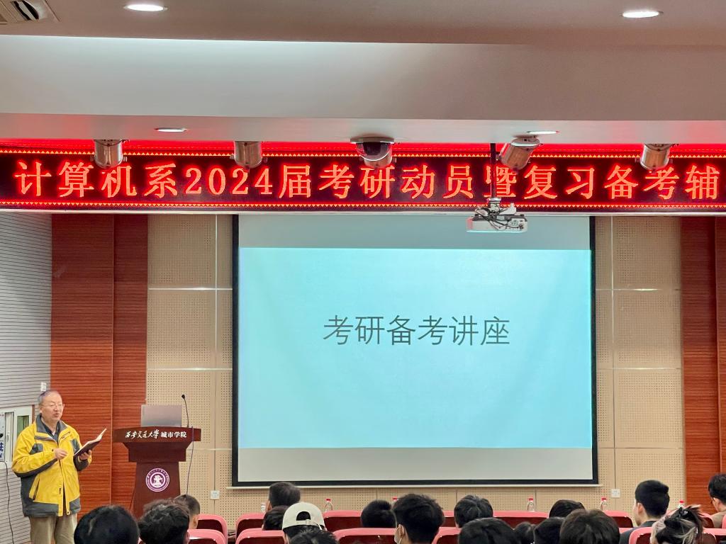 为帮助2024届学生进一步理清考研形势,明确考研目标,提升考研自信心,计算机系于3月14日晚在F100举行考研动员暨复习备考辅导讲座。本次讲座特邀beat365亚洲版官网城市学院副院长朱旭教授作主题辅导,计算机系主任姚全珠教授、主任助理王博、刘敏涛以及2024届考研学生参加了本次讲座,讲座由李丹丹老师主持。