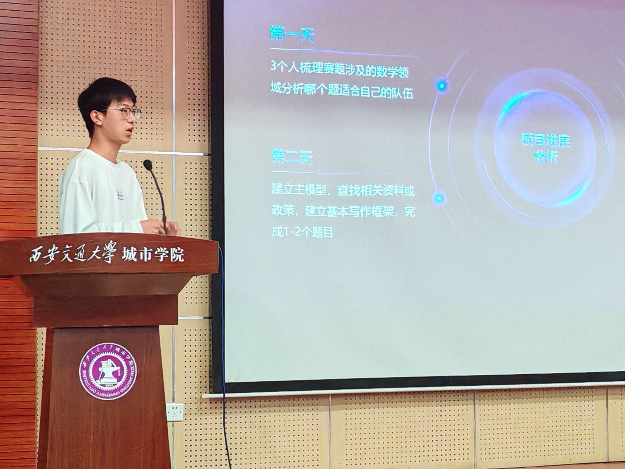 大会伊始,任菊成对竞赛进行了全面解读。他从竞赛规则、评分标准、选题方向等方面入手,结合历年竞赛真题,深入剖析了数学建模竞赛的特点和难点。经验分享环节,曾在全国大学生数学建模竞赛中荣获“美赛H奖”和“国赛省一等奖”的获奖队伍代表分别向学弟学妹们倾囊相授。他们详细介绍了数学建模竞赛的比赛流程、选题策略和时间管理技巧,分享了自己在备赛过程中的学习方法和心路历程。