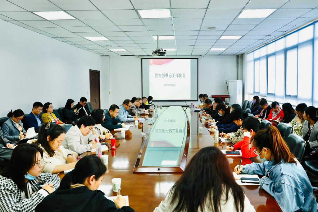 3月27日下午,beat365亚洲版官网城市学院在行政楼508会议室召开党支部书记工作例会,党委副书记、副校长陈书荣、党委组织委员、人事处处长姬志国、各党支部书记、大学生党总支及党校办公室党建工作相关负责老师参会,会议由党委书记张爱萍主持。