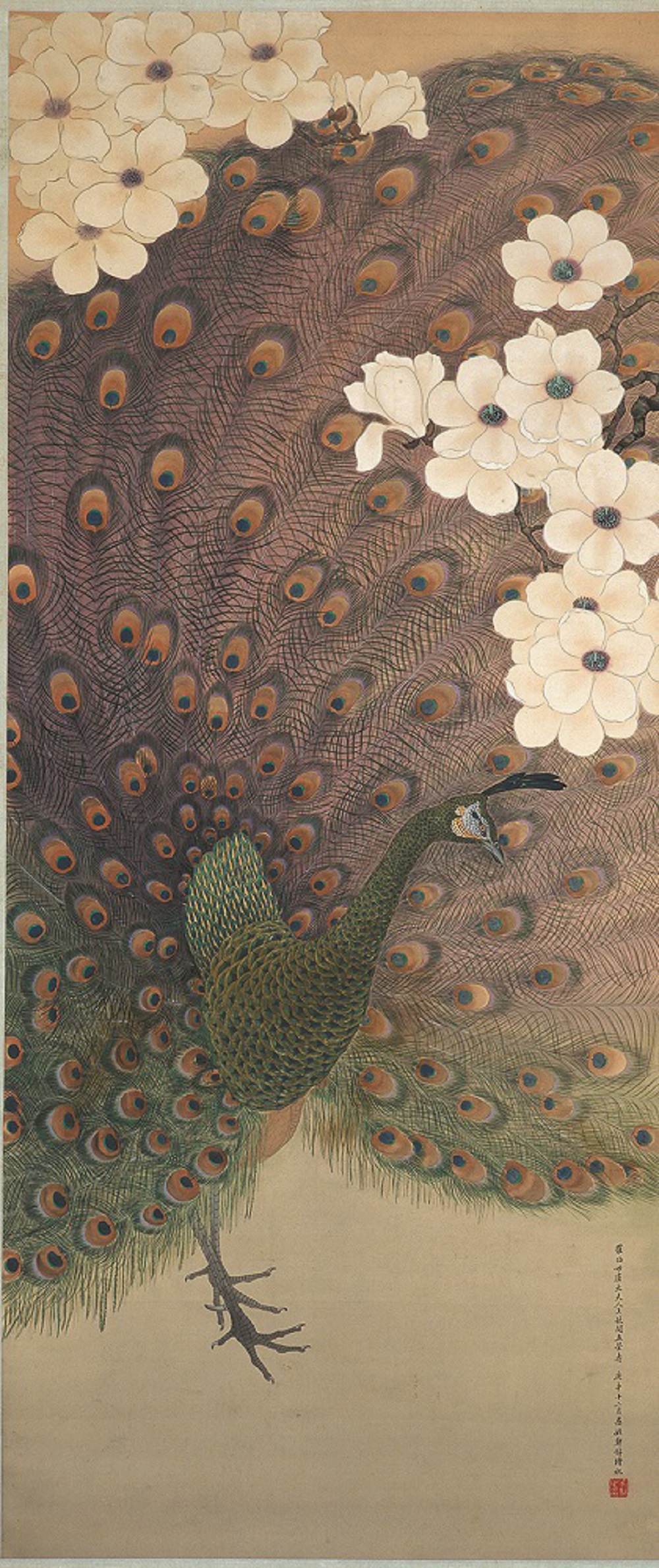郑锦《玉兰孔雀》167x72cm 1920 绢本工笔设色 Ky开元集团美术馆