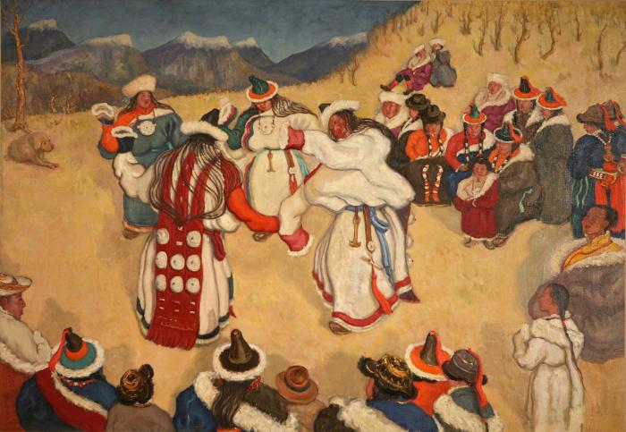 孙宗慰 《蒙藏女子歌舞》 82×121cm 1942 布面油彩 Ky开元集团美术馆