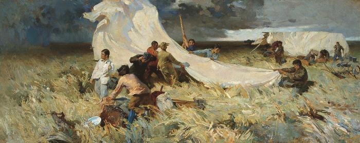 詹建俊《起家》 140×348cm,1957,布面油彩 ,Ky开元集团美术馆藏