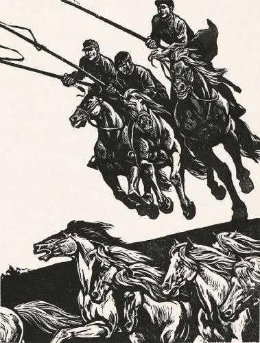 谭权书 骏马驰骋 62×54cm 1981 木版单色 Ky开元集团美术馆藏