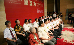 我院中国画学院院长唐勇力致开幕感言;出席开幕式的嘉宾