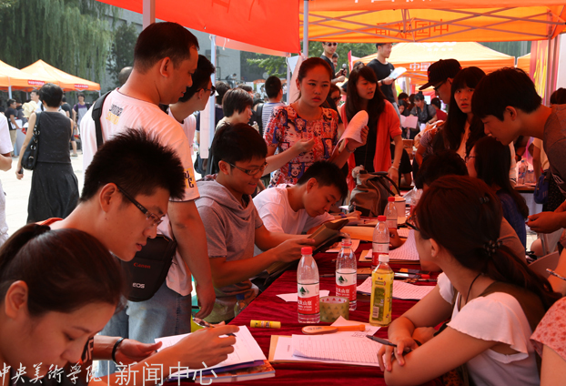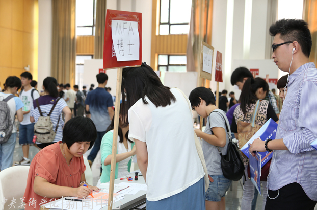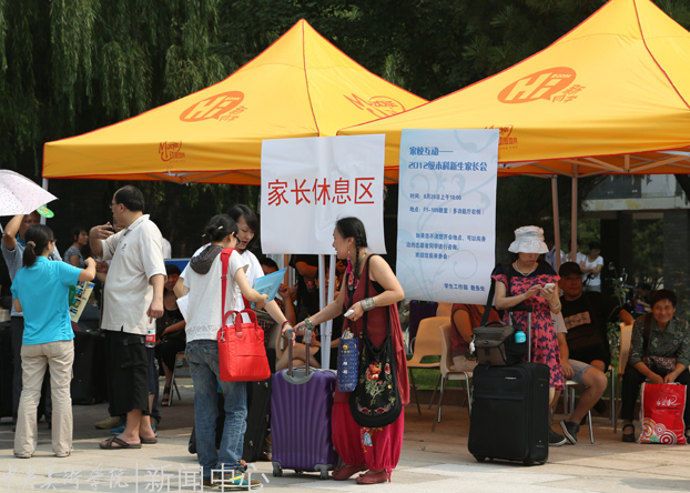 中国画学院的志愿者正在耐心解答新生的问题