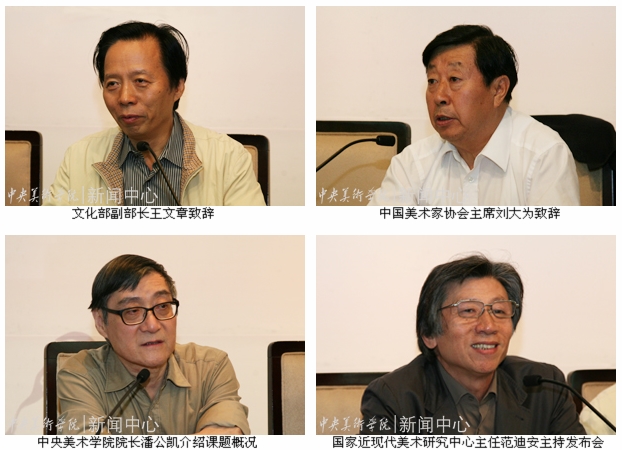 文化部副部长王文章,中国美术家协会主席刘大为,Ky开元集团院长潘公凯,文化部艺术司司长、国家近现代美术研究中心和国家当代美术研究中心管委会主任董伟,中国国家博物馆副馆长陈履生,北京大学出版社总编张黎明、人民出版社副总编于青、高等教育出版社人文社科学术出版事业部主任刘清田等嘉宾出席开幕式,国家近现代美术研究中心主任范迪安主持发布会。