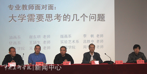 9月14日,学生军训返校后,学生工作部邀请油画系主任谢东明、版画系副主任李帆、壁画系副主任王颖生、实验艺术系主任吕胜中、设计学院吴帆和建筑学院周宇舫六位老师做客“一年级工程”,为大一新生带来互动式讲座:“专业教师面对面——大学需要思考的几个问题”。专业老师从学习与生活、理想与现实等角度,为学生在艺术道路上的成长指点迷津。下午,学生工作部邀请教务处王晓琳处长为学生介绍各学科专业的发展历史与研究前沿,并就教学运行管理方面问题进行了系统回答,从而帮助新生科学规划大学生活,尽快适应新的学习环境。