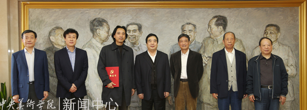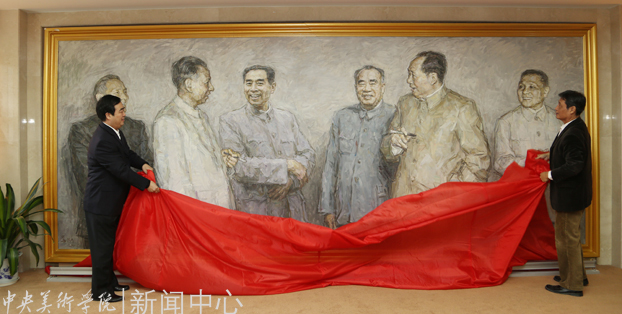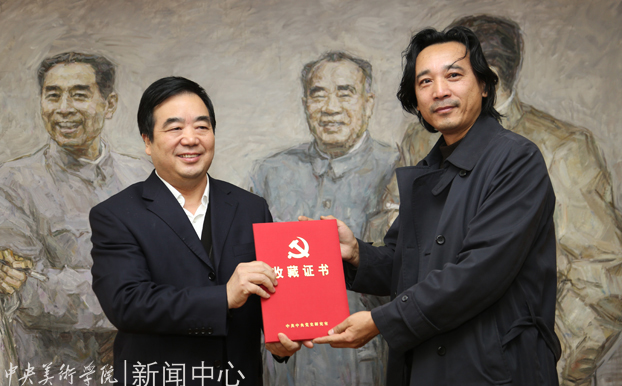 10月16日上午,由我院国家主题性美术创作研究中心副主任、附中副校长马刚副教授创作的大型油画作品《以毛泽东为核心的第一代中央领导集体》捐赠仪式在中央党史研究室举行。中央党史研究室主任欧阳淞、我院党委书记杨力等出席并为作品揭幕。欧阳淞主任向马刚副教授颁发了收藏证书。