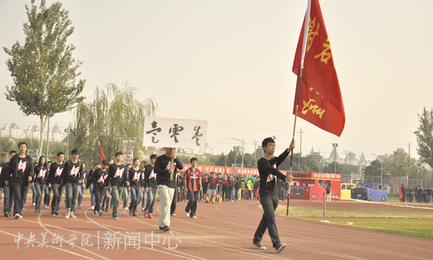 孙红培副书记宣布运动会开幕,伴随着激昂的进行曲旋律,在校旗的引领下,学生们以班级为单位分为22个方阵,在醒目的工作室或班级旗帜引导下依次出场,学生们迈着整齐有力的步伐,喊着铿锵嘹亮的口号,精神抖擞、意气风发地依次走过主席台,接受校领导检阅。别出心裁的出场表演,向观众展示着别样的精彩,成为开幕式的一大亮点,掀起了现场热烈的气氛。压轴出场的由校区保卫、保洁、物业、食堂组成的吉祥四宝方队,更是博得了在场观众的阵阵掌声。
