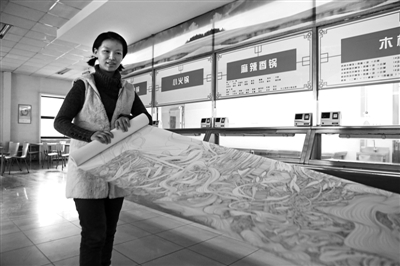 汪化拿出一卷30米长规格的纸卷,小心翼翼展开,疏密有致的线条在纸上流动出变化多姿的画面。汪化说,她来美院后就创作这幅画,已画了近5米。