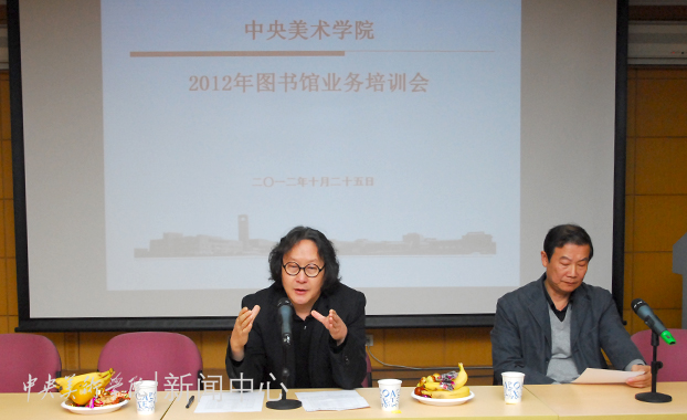 图书馆常务副馆长沈建东详细了这些培训的内容,从图书采购、验收、分编以及流通四个业务板块对图书馆的各项业务进行具体的讲解。他还对学院对于图书馆工作的大力支持表示了感谢,他说,经过大家的努力,图书馆的工作连年上台阶,图书经费增长显著。今后图书馆还将努力提高业务能力,为美院的发展贡献力量。