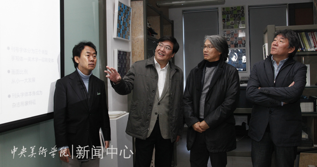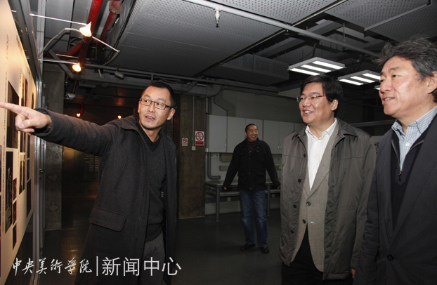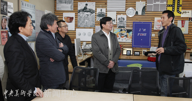 2012年11月13日上午,高洪书记在谭平副院长陪同下,对设计学院进行了实地走访视察,设计学院副院长金日龙、王川代表学院向高书记和谭平副院长介绍了各项工作。高书记一行先来到设计学院办公室,在了解教学管理和行政管理的现状后开始了深入工作室教学一线的考察走访。