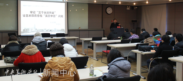 11月17日,培训班邀请人文学院宋修见老师做题为“牢记‘三个永远热爱’,让艺术和青春在‘美丽中国’闪光”的主题讲座。宋老师首先帮助学员解读了十八大报告的全文结构及部分创新点和亮点;接着,他从胡锦涛同志在庆祝中国共产党成立90周年大会讲话中提到的“永远热爱祖国、永远热爱人民、永远热爱中华民族”出发,为同学们剖析了“三个永远热爱”的内涵和现实意义,希望同学们能够从自身做起,坚定理想、脚踏实地,在艺术“自由而全面发展”的时代,施展自己的才华和抱负,努力肩负起为祖国、人民建功立业的远大志向,为社会主义文化大发展、大繁荣做出贡献。