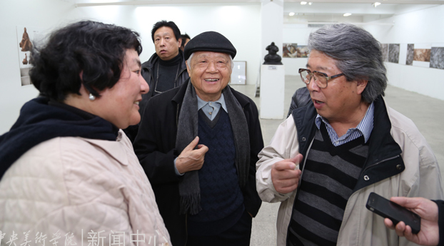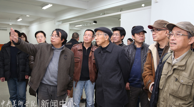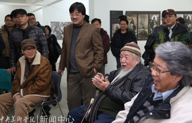 最近,不少老师正忙着“中华文明历史题材美术创作工程”的创作。11月16日下午,侯一民、靳尚谊、邵大箴、盛杨、广军、曹春生、孙为民、孙景波等先生以及副院长徐冰、国家主题性美术创作中心主任唐勇力、副主任毕建勋、马刚等来到教学展厅,汇看相关作品,与参与创作的中青年艺术家们一同聊创作,向他们提建议,老中青三代喜乐融融。