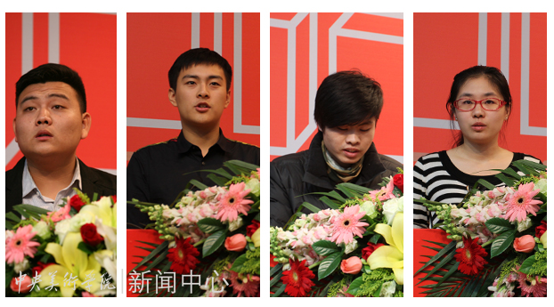 人文学院贾俊栋同学、设计学院刘馨元同学、造型学院版画系张传祥同学、中国画学院薛尧同学分别代表获奖班集体和个人发言。他们表示将再接再厉,努力学习,踏实工作,自强勤勉,争取获得更好成绩。