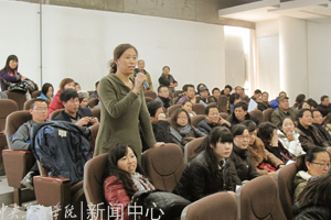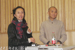 美院附中校长孙伟老师欢迎“国培计划”学员参观学习;座谈会上,学员就关心的问题向附中负责人提问