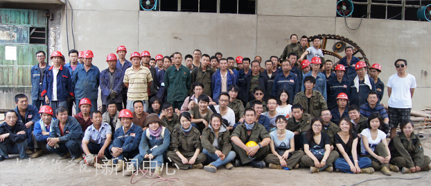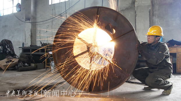 一个多月的艰苦创作结束了,青年艺术家和工人师傅都是英雄