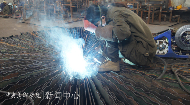 同学们聚精会神地操作各种金属加工设备,进行直接金属雕塑创作
