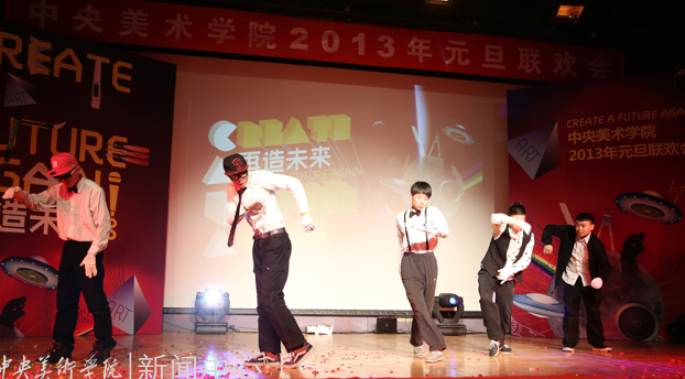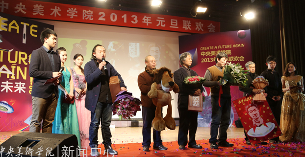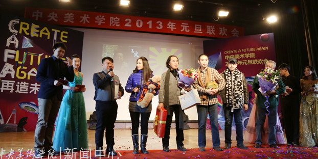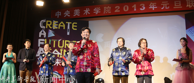 2012年12月31日下午,由Ky开元集团团委、学生会主办的“CREATE A FUTURE AGAIN 再造未来——Ky开元集团2013年元旦联欢会”举行。党委书记高洪、副院长董长侠、谭平、徐冰,党委副书记孙红培与美院师生欢聚一堂,共同迎接2013年元旦曙光。院长潘公凯因公外出,特别委托院领导班子代其向全院师生转达新年祝福。