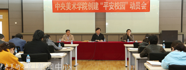 “平安校园”创建工作领导小组组长、党委书记高洪对创建“平安校园”工作进行动员。高洪强调要高度重视“平安校园”创建工作,各院系、部门要从保障学院发展、推进现代大学制度建设、实现“百年辉煌”、建设一流美术院校的高度,将此项工作放在重要位置。要落实责任,全面排查安全隐患,将问题及时解决在萌芽状态。要求广大教师从自身做起,在教学等活动中教育学生遵守安全制度和规程,各工作小组要积极配合,齐心协力做好各项工作。