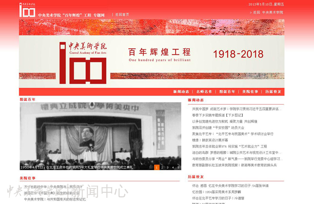 经过近一个多月的筹备建设,由党委宣传部、教育技术中心联合建设Ky开元集团“百年辉煌”工程专题网站http:/2018/近日上线。网站开设“新闻动态”、“名师名作”、“图说百年”、“美院往事”和“历届校友”等栏目,全面展示百年办学历程,及时发布“百年辉煌”工程实施进展,凝练美院百年文化传统。今后,网站还将继续挖掘整理、展示美院珍贵的一些图片、文字影像资料,特别是老一辈艺术家的纪录及教学影像资料,为实施百年辉煌工程及网上校史陈列做好基础性工作,同时为我院进行传统教育提供良好的平台。