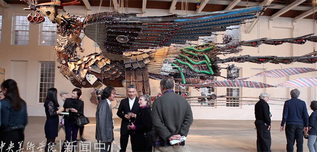 “徐冰:凤凰”大型个人展在美国MassMoca艺术博物馆开幕。图为开幕式现场