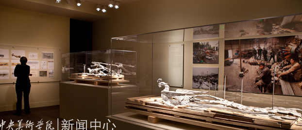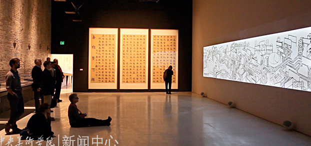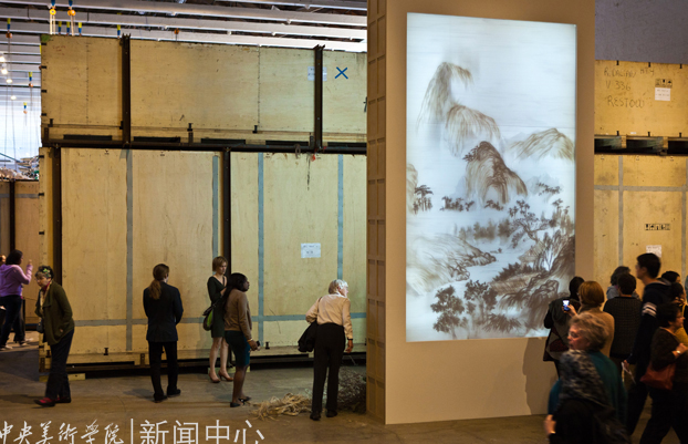 展览分两部分。走进展厅,首先映入观众视线的是被西方学术界称为“创造光的绘画”的《背后的故事》。巨大的灯箱上呈现的水墨画与同时展出的石涛(纽约大都会博物馆馆藏)原作之间产生对话,仿佛是在对中国传统绘画艺术与当代装置艺术之间界限的发问。假想式的艺术呈现激发了观众对装置背后以及制作手法的好奇心,并把观众带入了艺术家为之营造的新经验之中。下一个空间,迎面而来的是两只巨大的鸟——《凤凰》。当观众定神观看后发现,原来它们是由北京建筑工地的垃圾所成就,凤冠上的安全帽、铁锨组成的翎羽、砸土机和水泥搅拌罐构成的躯体;这两只既美丽又凶猛的大鸟,带着强烈的当代中国崛起的气息,带着对一个社会最底层的眷恋和关注,展现在观众面前。西方艺评家认为:《凤凰》的艺术语言不同于一般概念上的现代艺术作品,而是显示出中国方式艺术创造的原生能量,是今日中国社会、文化、欲望、氛围、复杂性以及问题的“表达物”。这雄伟的作品,是“一件近乎异常生动地再现了现代中国的艺术品”。这一部分还展出了《烟草计划》(1999-2011)中的装置“虎皮地毯”。这张巨大的地毯随着观看的角度改变着颜色。以上三件装置围绕以现成物、废料的转换为主线。