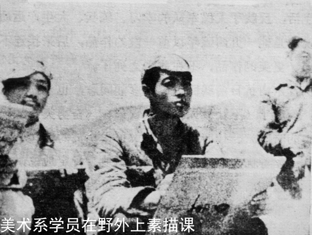 美术系学员在野外上素描课