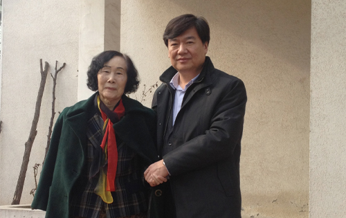 党委书记高洪2015年1月23日到家中走访慰问时与廖静文先生在大门外合影